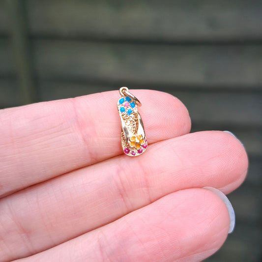 14ct Yellow Gold and Colourful Enamel Flip Flop Charm