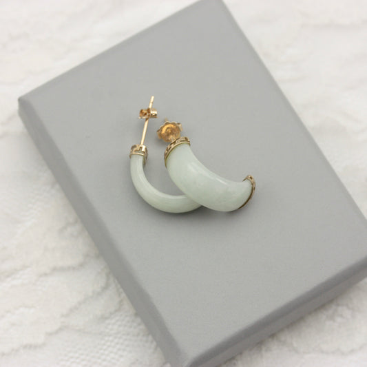 Pre-owned 9ct Gold and Jade Half Hoop Earrings