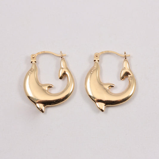 Pre-owned 9ct Gold Dolphin Hoop Earrings