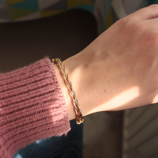 Pre-owned 9ct Gold Double Twist Hinged Bangle