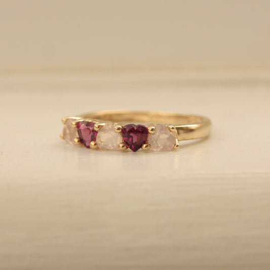 Pre-owned 9ct Gold Garnet & Rose Quartz Hearts Ring, 2006