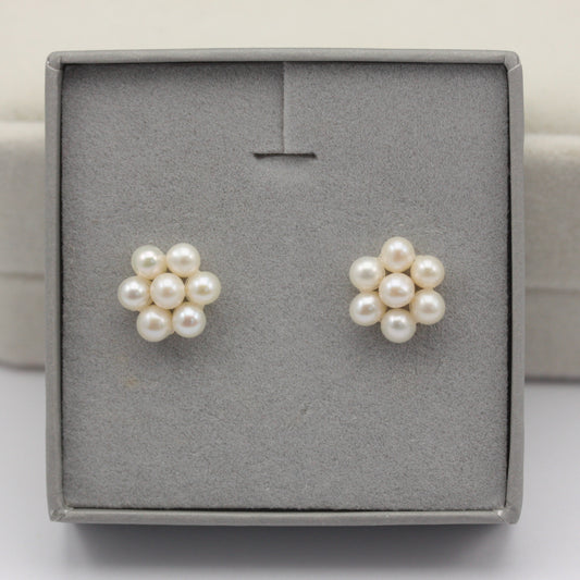 9ct Gold Freshwater Pearl Flower Stud Earrings