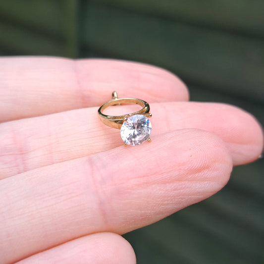 9ct Gold Cubic Zirconia Engagement Ring Charm with Bolt Ring Clasp