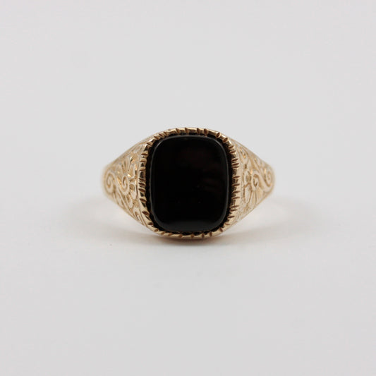 Pre-owned 9ct Gold Onyx Signet Ring with Decorative Shoulders