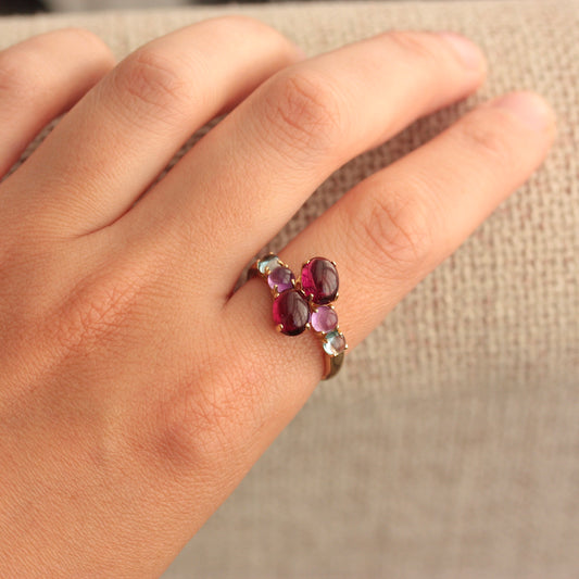 Pre-owned 9ct Gold Multi Gemstone Cabochon Ring, 2006