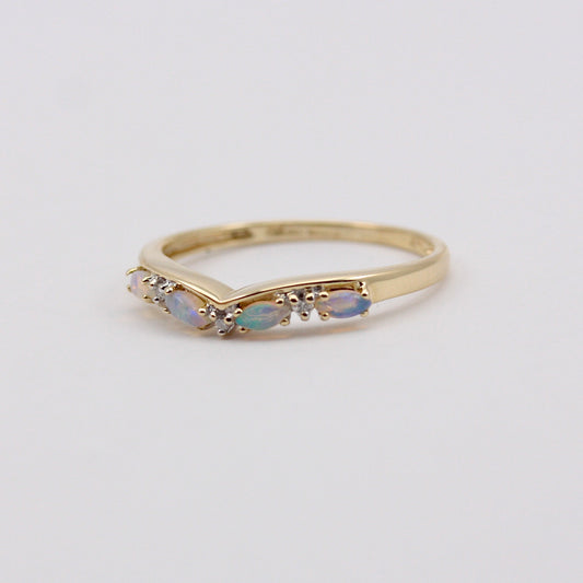 Pre-owned 9ct Gold Opal and Diamond Wishbone Ring, 2002