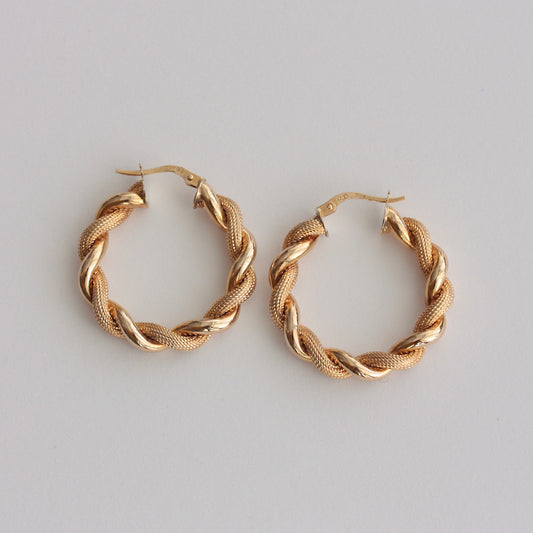 Pre-owned 9ct Gold Rope Twist Hoop Earrings, Medium / Large