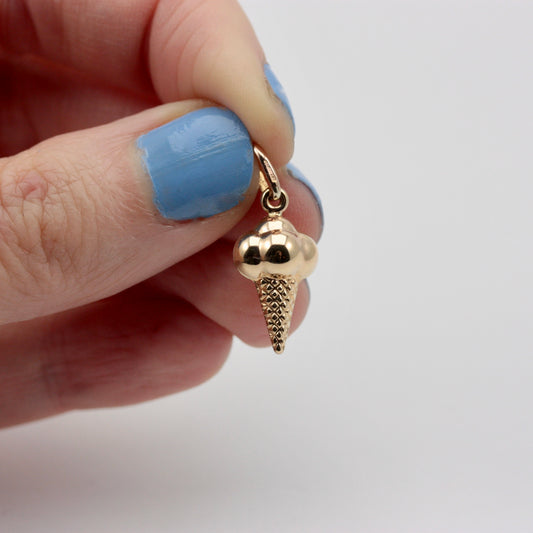 Pre-owned 9ct Gold Puffy Ice Cream Cone Charm
