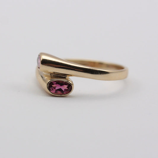 Pre-owned 9ct Gold Pink Tourmaline Crossover Ring, Modern