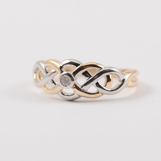 Pre-owned 9ct Yellow and White Gold Celtic Ring with Diamond