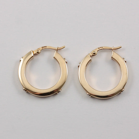 Pre-owned 9ct Yellow an White Gold Screw Hoop Earrings, Medium