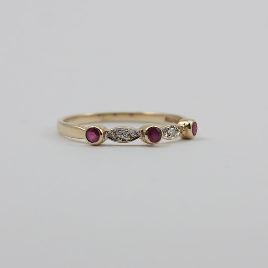 Pre-owned Dainty 9ct Gold Ruby and Diamond Band Ring