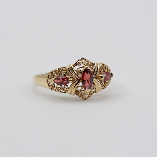 Pre-owned Filigree 9ct Gold Garnet Ring