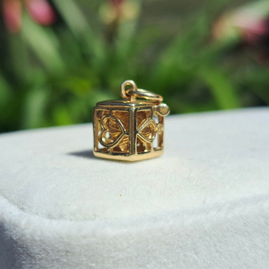 Rare Vintage 9ct Gold Opening Dice / Box Charm with Playing Cards Inside, 1963