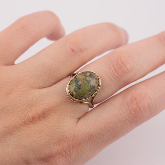 Rare Vintage Statement Ring with Unakite Gemstone, 1973