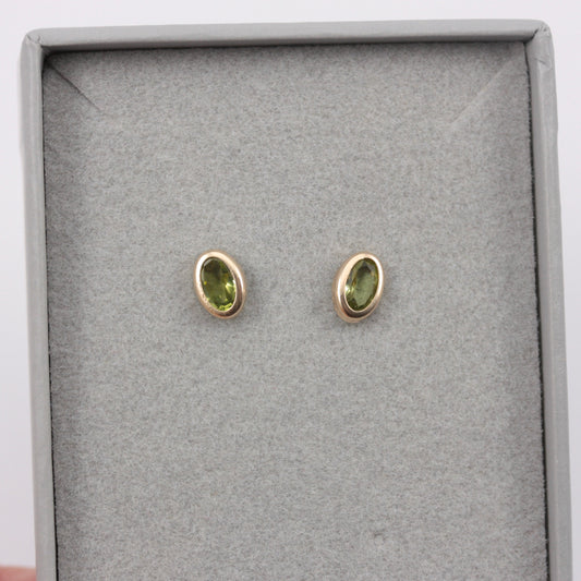 Small 9ct Gold Oval Peridot Stud Earrings, 6mm x 4mm