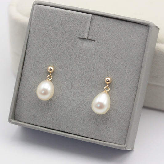 Solid 9ct Gold Teardrop Pearl Dangle Earrings