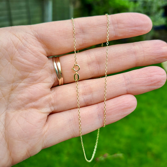 Solid 9ct Yellow Gold Cable Chain Necklace, 1mm