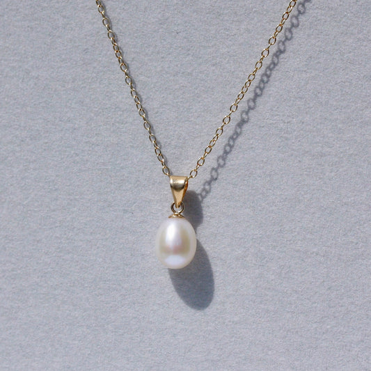Solid 9ct Gold White Freshwater Teardrop Pearl Pendant, June Birthstone