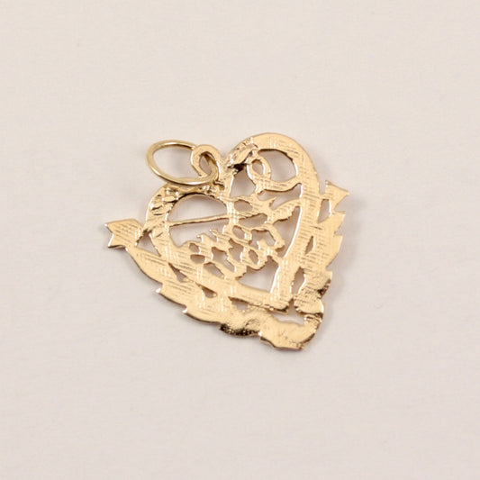 Vintage 14ct Gold Floral Heart Pendant, 1980s, OroAmerica