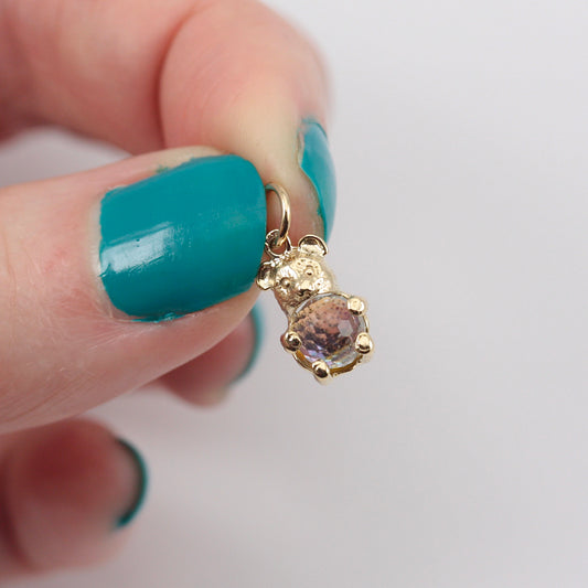Tiny Vintage 9ct Gold Teddy Bear Charm with Aurora Borealis Crystal Belly, 1989