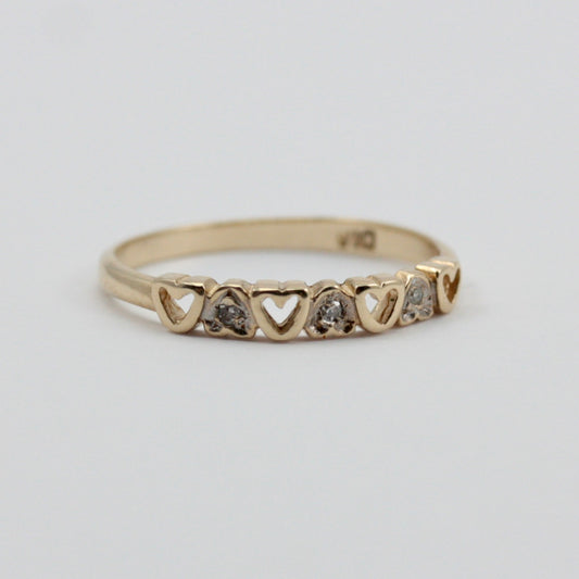 Vintage 9ct Gold and Diamond Heart Band Ring, 1980s