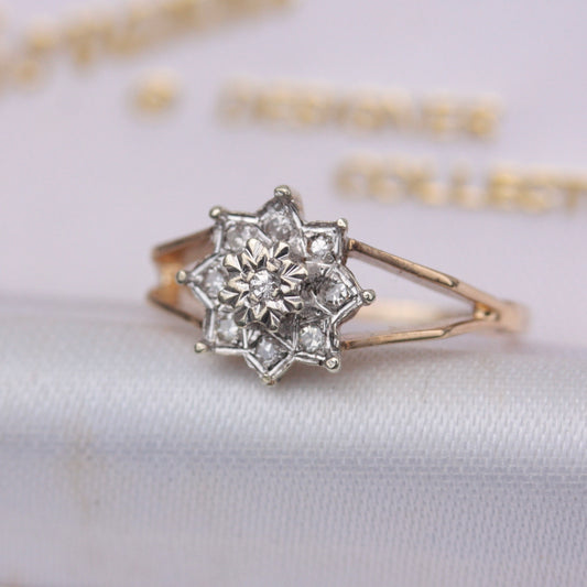Vintage 9ct Gold and Diamond Star Cluster Ring, 1981