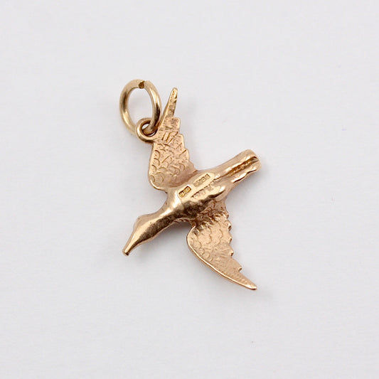 Vintage 9ct Gold Bird In Flight Charm / Pendant, 1965