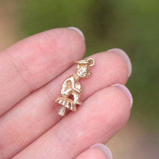 Vintage 9ct Gold Cornish Pixie on Toadstool Charm, 1968