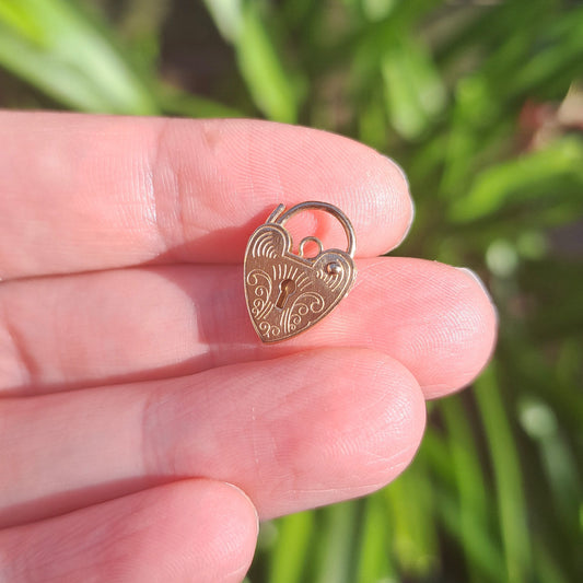 Vintage 9ct Gold Heart Padlock Clasp / Charm with Engraved Pattern, 1995