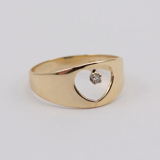 Vintage 9ct Gold Heart Cut Out Band with Diamond, 1978