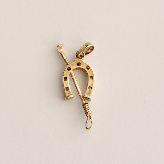 Vintage 9ct Gold Horseshoe and Riding Crop Pendant, 1988
