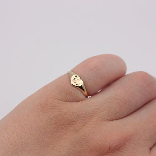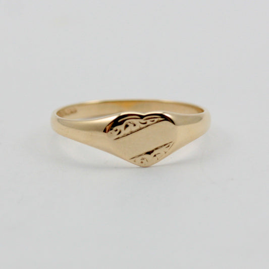 Vintage 9ct Gold Heart Signet Ring, 1983