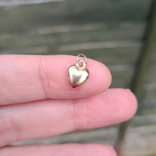 Vintage 9ct Gold Mini Plain Puffy Heart Charm, 9mm
