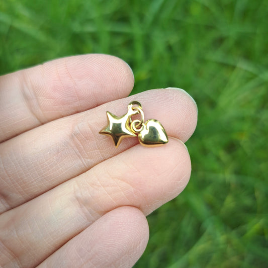 Vintage 9ct Gold Mini Star and Heart Double Charm