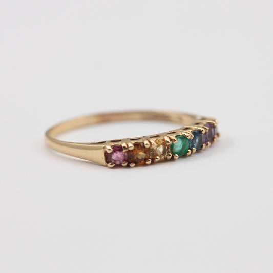 Vintage 9ct Gold Multi Gemstone Rainbow Ring, 1991