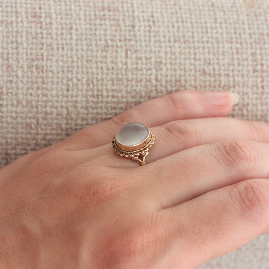 Vintage 9ct Gold Moss Agate Ring, 1977