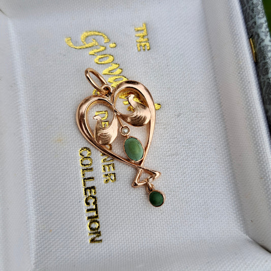 Antique Art Nouveau 9ct Gold, Turquoise and Seed Pearl Heart Pendant