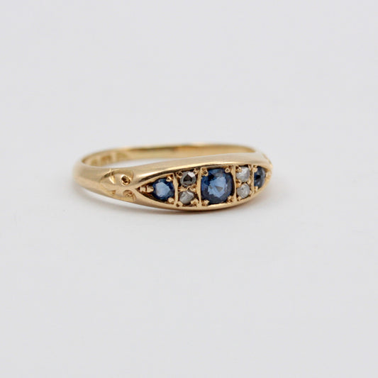 Antique 18ct Gold Sapphire and Diamond Boat Ring