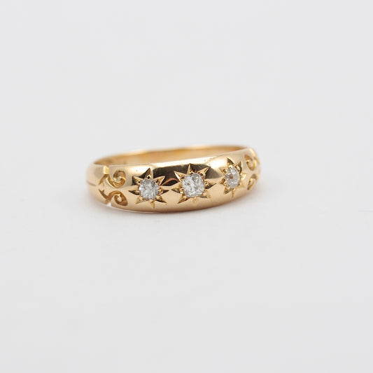 Antique 18ct Gold Star Set Diamond Three Stone Ring, 1892