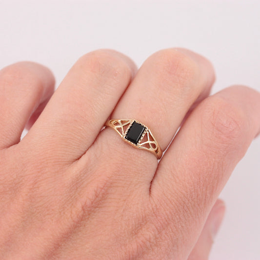 Vintage 9ct Gold Onyx Ring with Open Shoulders, 1985