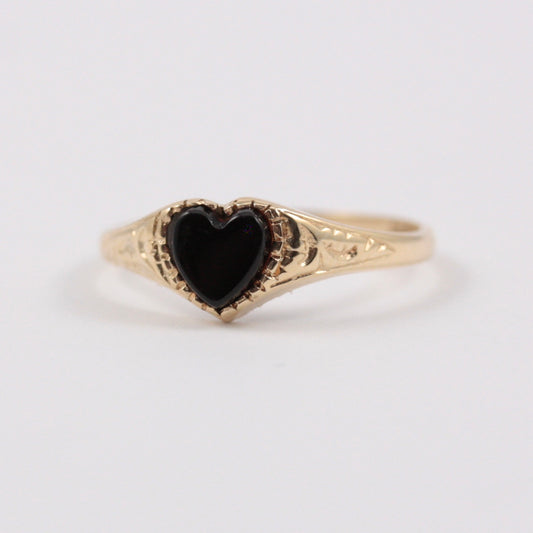 Vintage 9ct Gold Onyx Heart Signet Ring, 1993