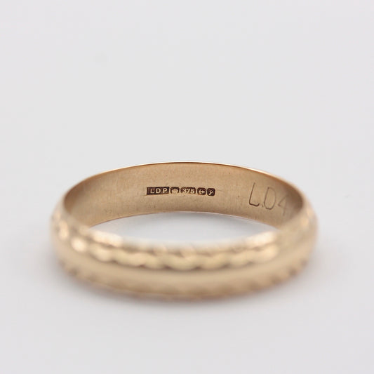 Vintage 9ct Gold Patterned Wedding Band Ring, 1987