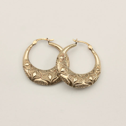 Vintage 9ct Gold Patterned Creole Hoop Earrings