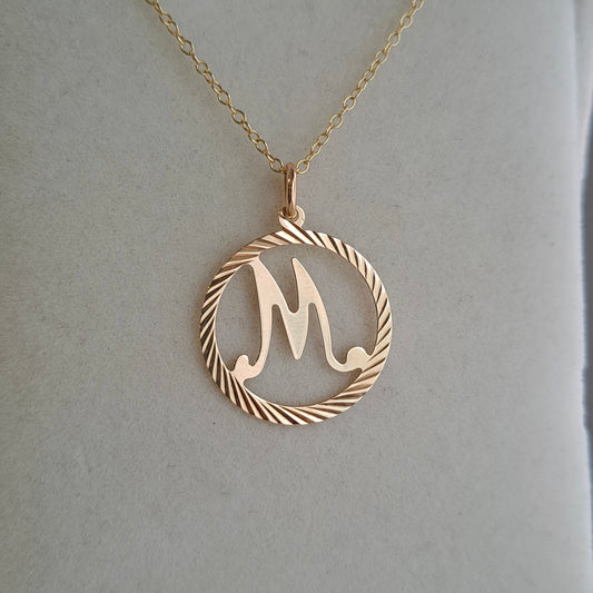 Vintage 9ct Gold Round Letter "M" Charm / Pendant
