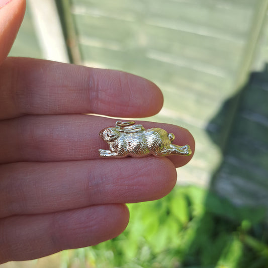 Vintage 9ct Gold Running Rabbit Charm, 1975