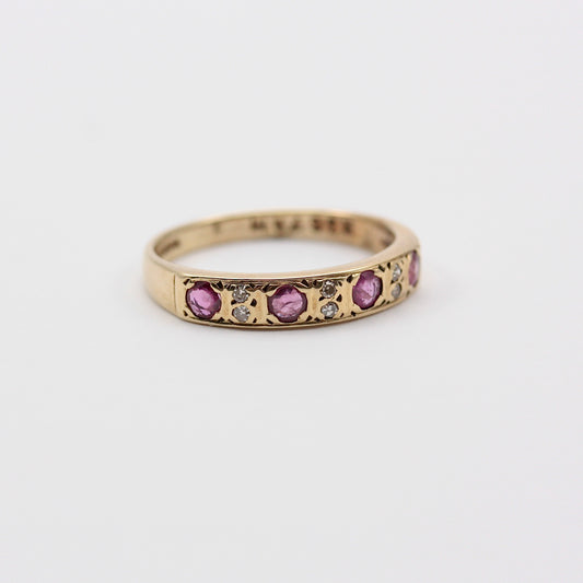 Vintage 9ct Gold Ruby and Diamond Half Eternity Band Ring, 1986