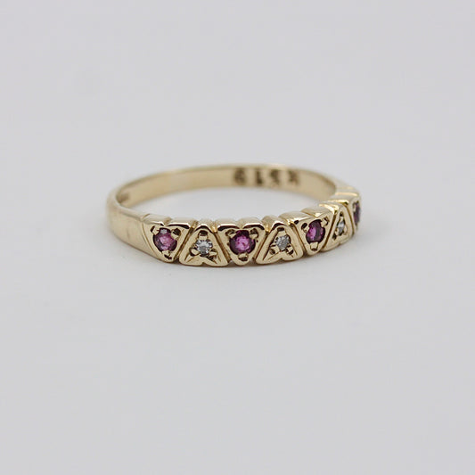 Vintage 9ct Gold Ruby & Diamond Hearts Half Eternity Band Ring, 1986
