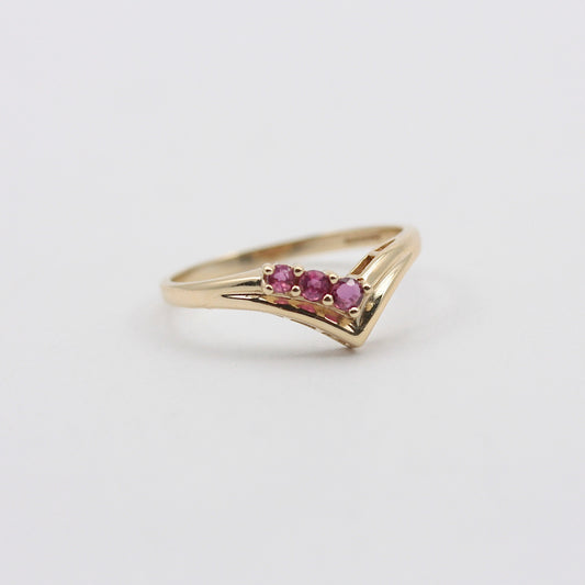 Vintage 9ct Gold Ruby Wishbone 3 Stone Ring, 1990s