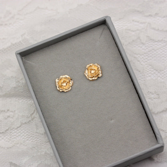 Vintage 9ct Gold Rose Stud Earrings, 1977